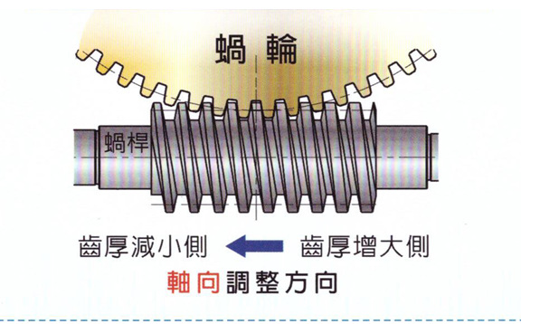 精密無間隙雙導(dǎo)程蝸輪蝸桿系統(tǒng)結(jié)構(gòu)是根據(jù)蝸輪蝸桿在正逆運(yùn)轉(zhuǎn)時(shí)的齒厚不同的變化來設(shè)計(jì)的,通過蝸桿的軸向移動,使蝸輪蝸桿間的齒隙連續(xù)發(fā)生變化,保持蝸輪蝸桿的正確位置的基礎(chǔ)上可調(diào)整后退距離,從而達(dá)到理想的齒隙削除。