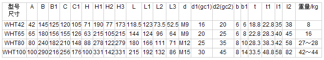 | WHT42 | 42 | 146 | 135 | 140 | 115 | 66.5 | 118.5 | 123 | 73.5 | 52.5 | 66 | 73 | M9 | 16 | 20 | 6 | 6 | 18.8 | 22.8 | 8 | ||